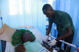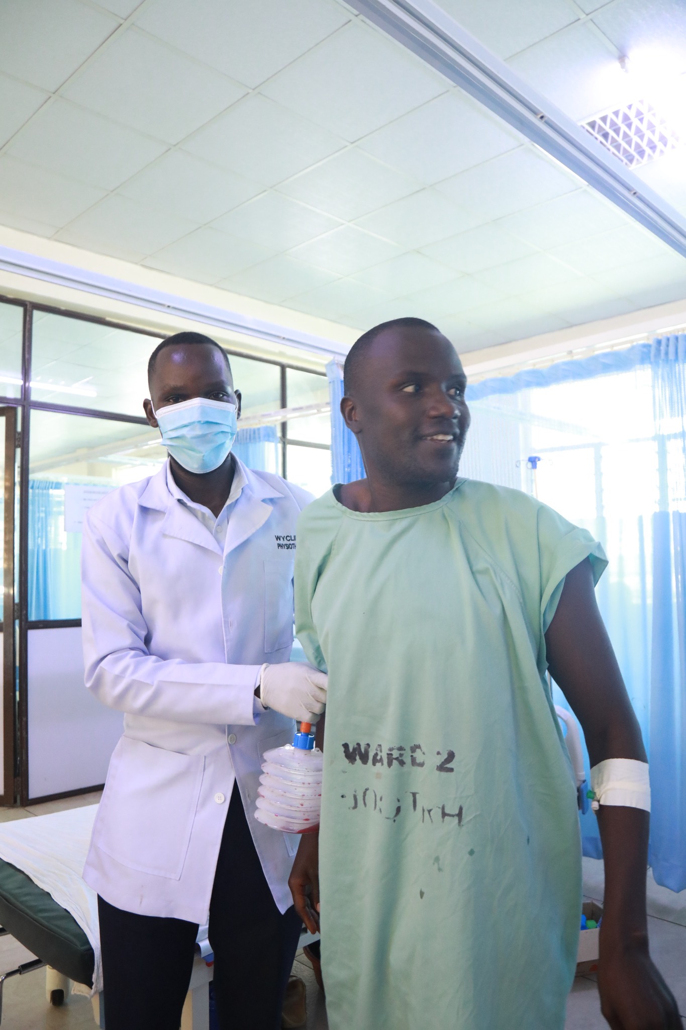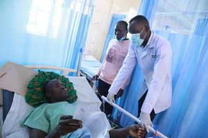 “I hope to get back to my work and provide for my family again,” says Wickliffe Odhiambo Adoma, 35, as he recovers in Ward 3A at Jaramogi Oginga Odinga Teaching and Referral Hospital (JOOTRH) following a successful spinal procedure. By his bedside is his wife, offering constant care and reassurance as he begins his journey toward recovery.
