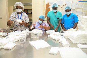 With a staff establishment of 13 personnel, TSSU manages a high workload despite limited human resources. Core functions include folding and cutting gauze using a gauze cutter, preparing surgical gowns, assembling maternity packs, suture packs, biopsy packs, and packaging all surgical materials. After thorough sterilization, instruments are wrapped in linen and stored in a designated sterile area awaiting dispatch to the respective departments.